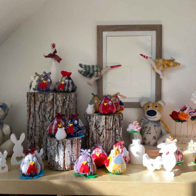 Je suis une créatrice d’accessoires en tissu tel que des trousses de toilette, des accessoires pour enfant, des cigognes en kelsch, des oursons, des décos comme des cœurs et des papillons.